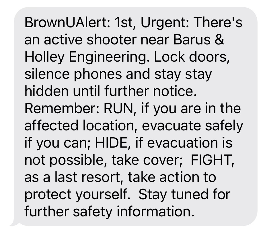 I had always felt that Brown was going to be my safe space. On my third day of high school, we had a bomb threat—an experience I’m sure is now common among my generation—and I went to school every day for the rest of my time there wondering whether we’d be locked down again for something that wasn’t only a threat. There never was, and I graduated high school thinking—naïvely—that I’d made it through the period-of-worst-odds in regard to being victim of a school shooting. Brown was supposed to be a sanctuary: compared to my high school, they have all of the resources and money needed to prevent such an atrocity from occurring in the first place (and a whole department of public safety!). I thought I would, at the very least, be safe.
